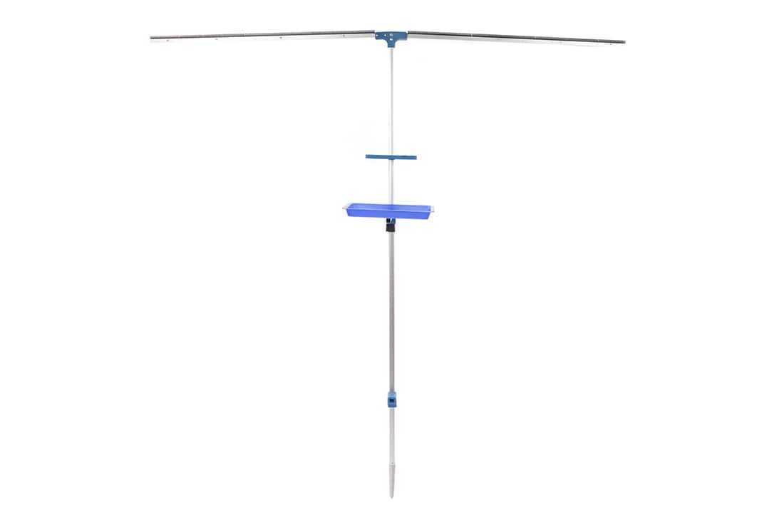 Mât renforcé de forme quadrangulaire. Plateau pliable et support de poids. Pièce d'appui en plastique pour un meilleur ancrage dans le sable.
